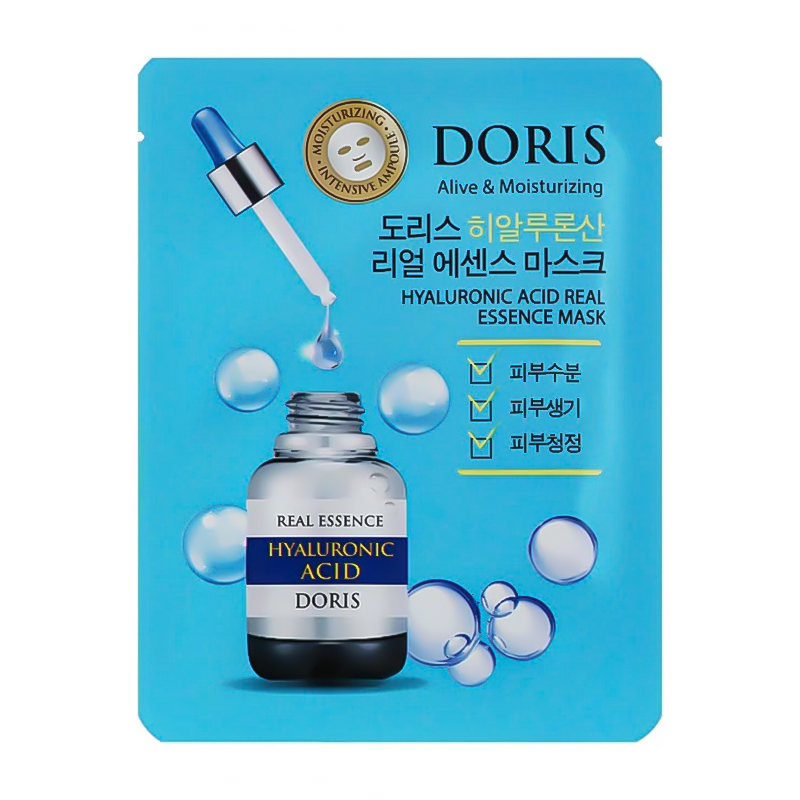 DORIS HYALURONIC ACID Real Essence Mask contine o formula bogata in acid hialuronic ce ajuta la retinerea umiditatii si la refacerea barierei cutanate. Masca este ideala pentru pielea uscata si devitalizata.